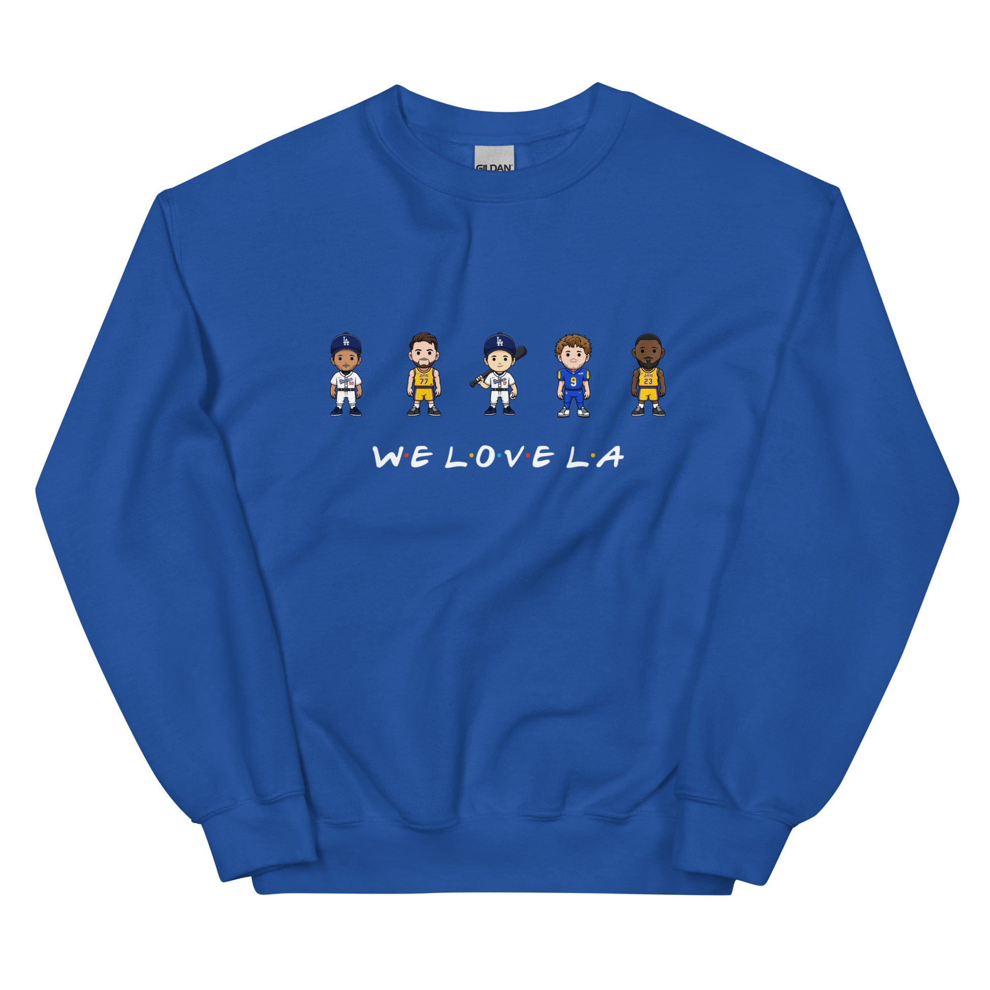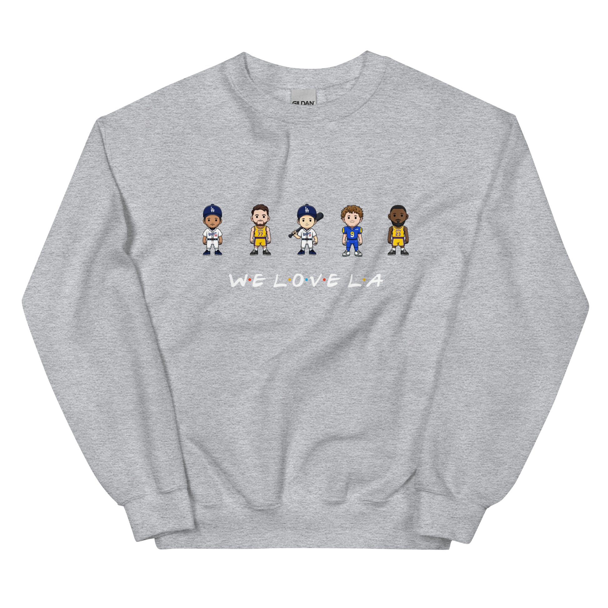 We Love LA Friends Crewneck Sweatshirt (Mookie Betts, Luke Doncic, Shohei Ohtani, Matthew Stafford, and LeBron James